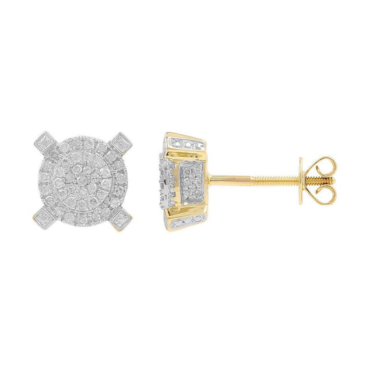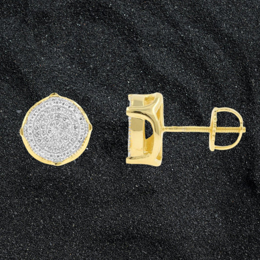 GOLD PLATED ROUND CLUSTER VVS MOISSANITE DIAMOND EARRINGS FOR MEN