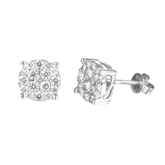 ROUND CLUSTER VVS MOISSANITE PASS DIAMOND TESTER EARRING STUDS FOR MEN